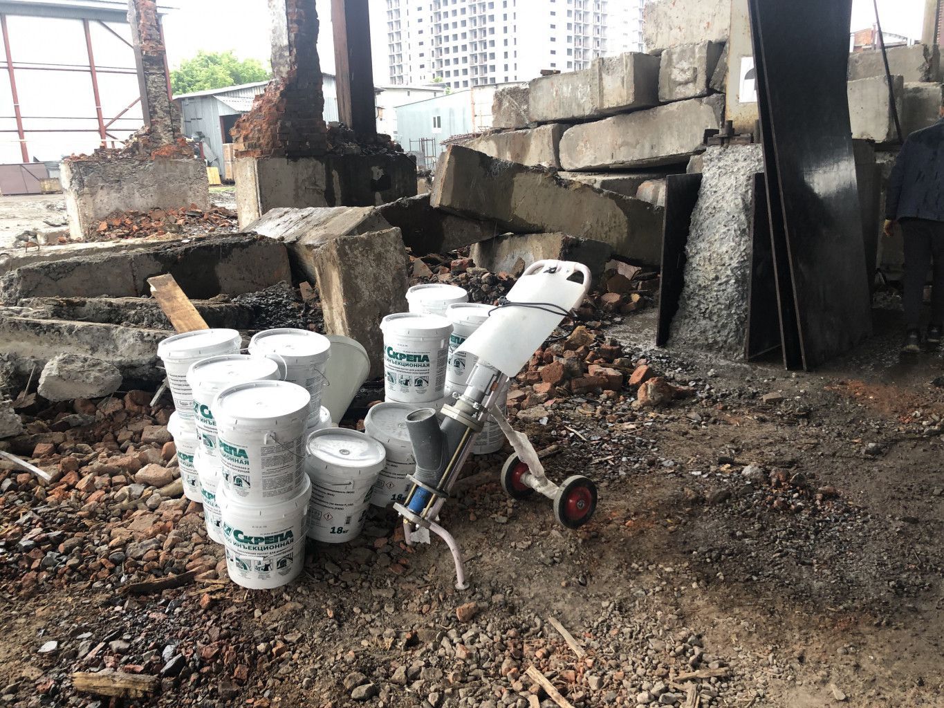 Комплекс работ производился с использованием материала Скрепа М600 инъекционная